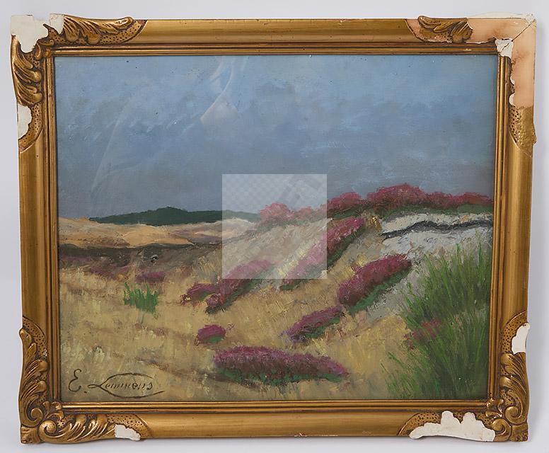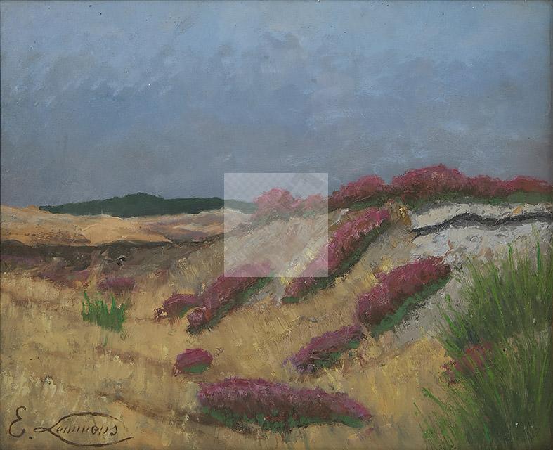 Lot n°456 - 456 Emile LEMMENS (1821-1867) "Bruyères dans les dunes du Nord" Huile sur