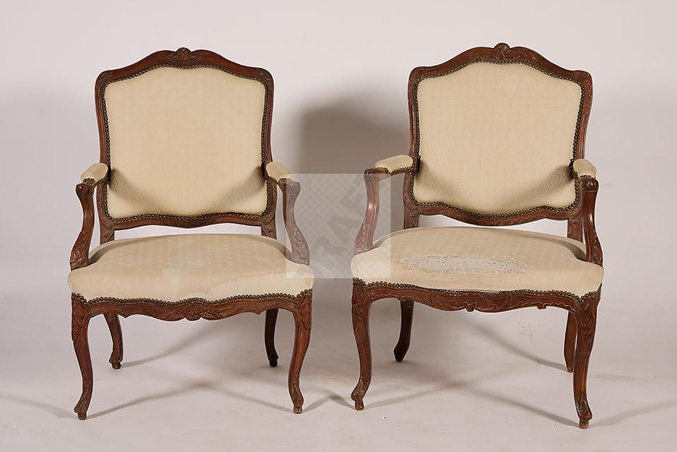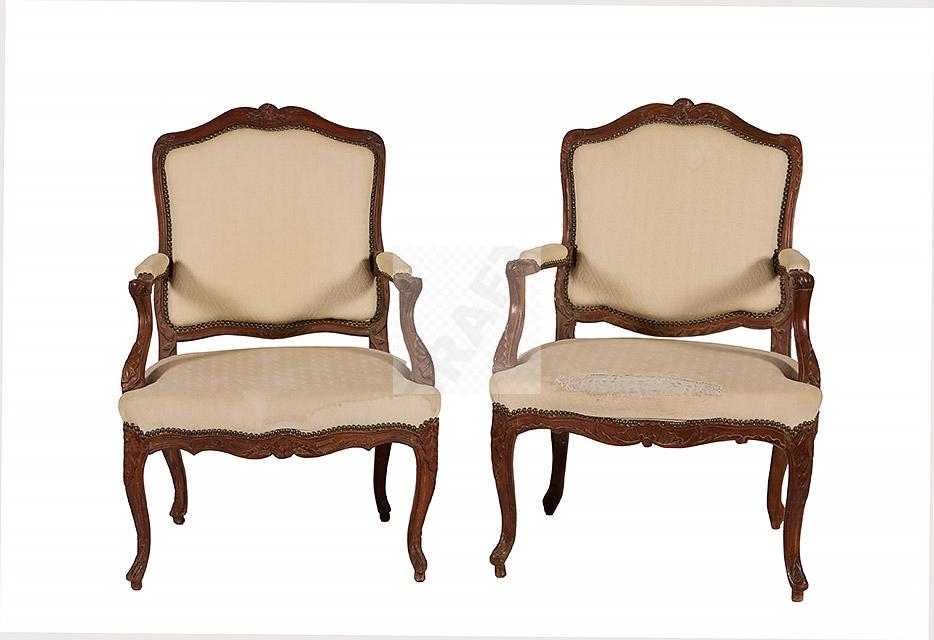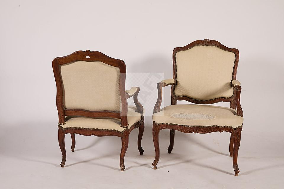 Lot n°472 - 472 Suite de deux fauteuils à la reine en bois mouluré sculpté posant sur quatre