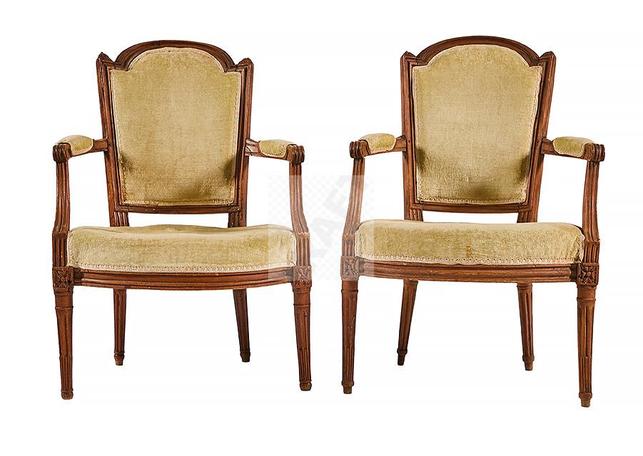 Lot n°479 - 479 Elégante paire de fauteuils cabriolet à dossier légèrement cintré et chapeau