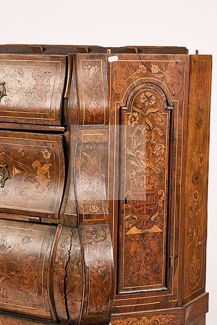 Lot n°482 - 482 Vitrine hollandaise en noyer marqueté de bois clair à décor de personnage, e