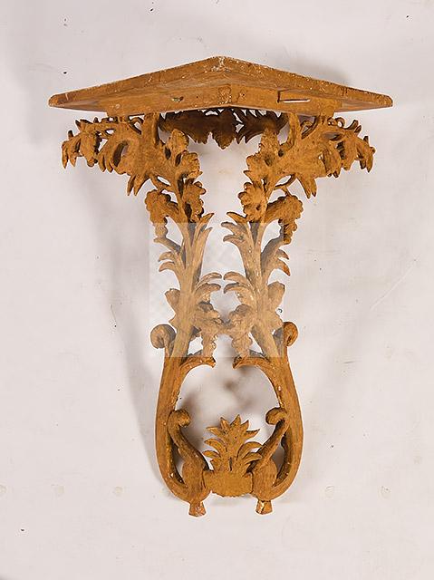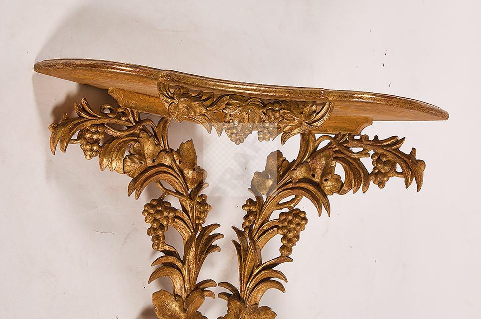 Lot n°485 - 485 Console d’angle en bois sculpté et doré à décor de pampres, grappes de raisi