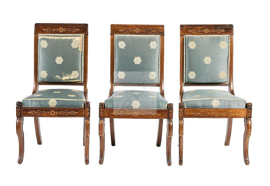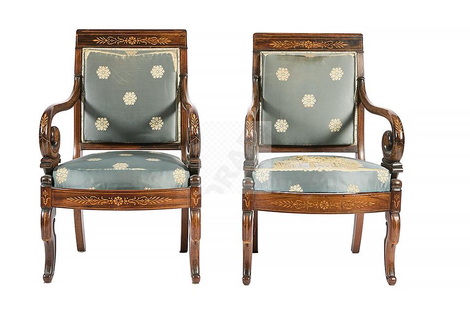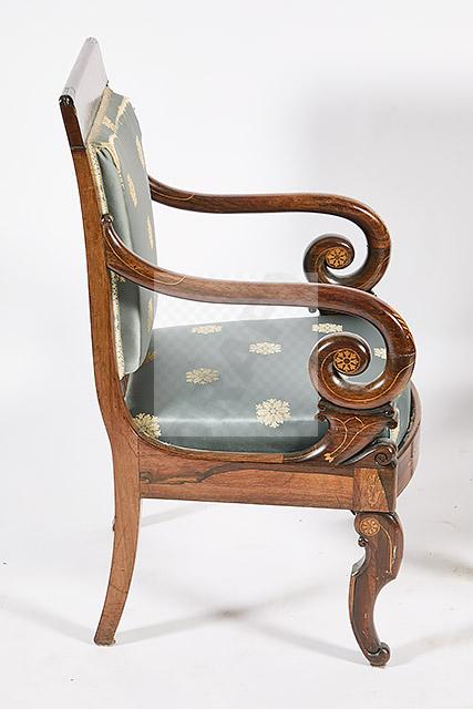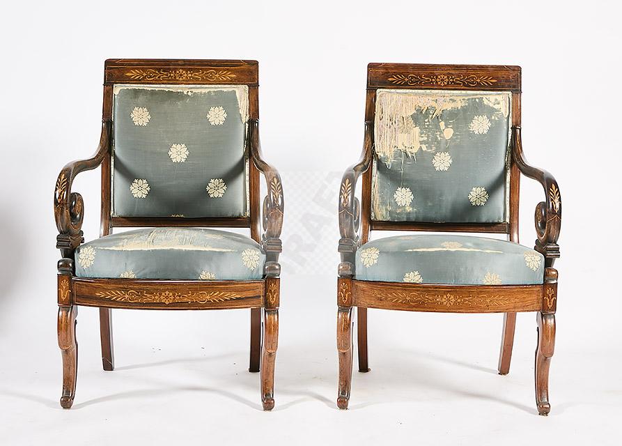 Lot n°491 - 491 Ensemble de mobilier d’époque Charles X à décor marqueté de rosaces, palmett