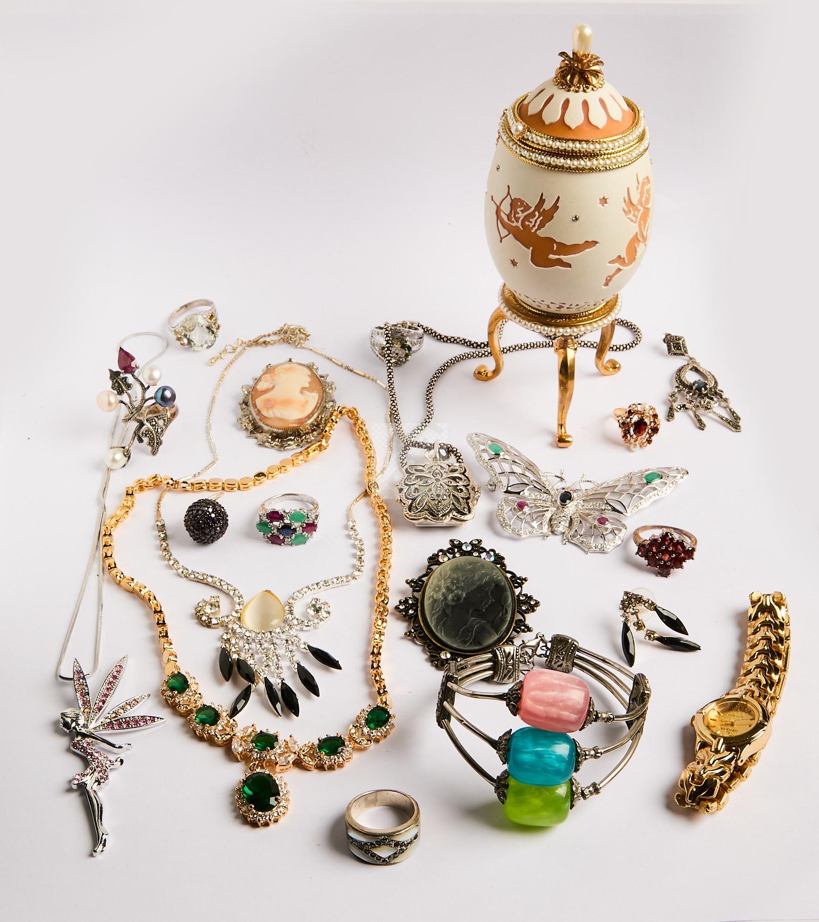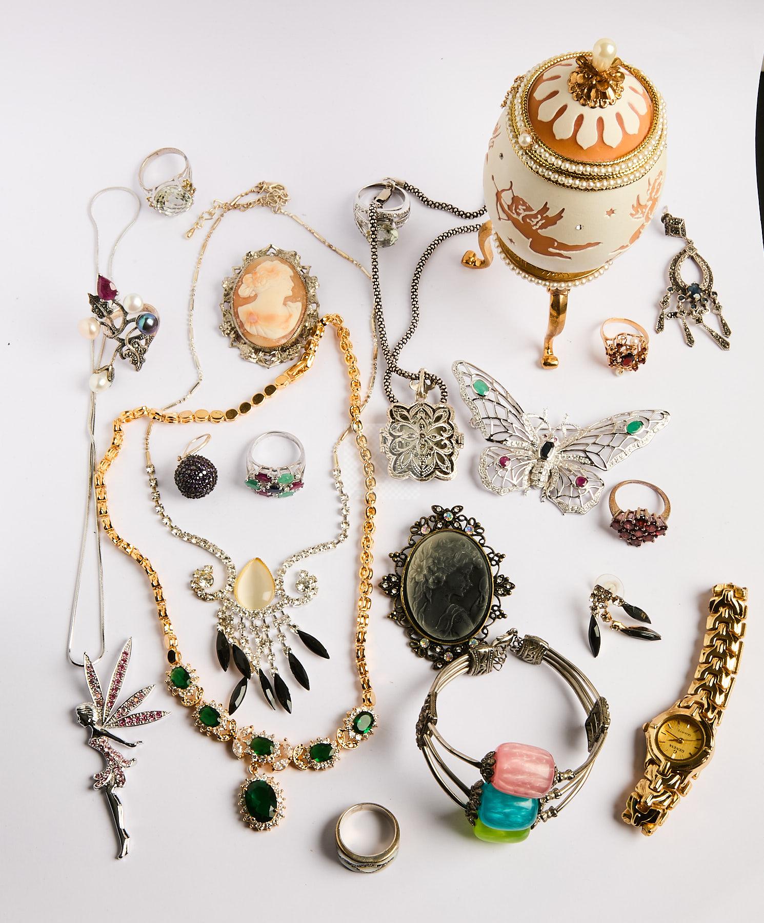 1 Lot de fantaisies : montres, chaines, pendentifs, médaillons, bagues en métal et divers.