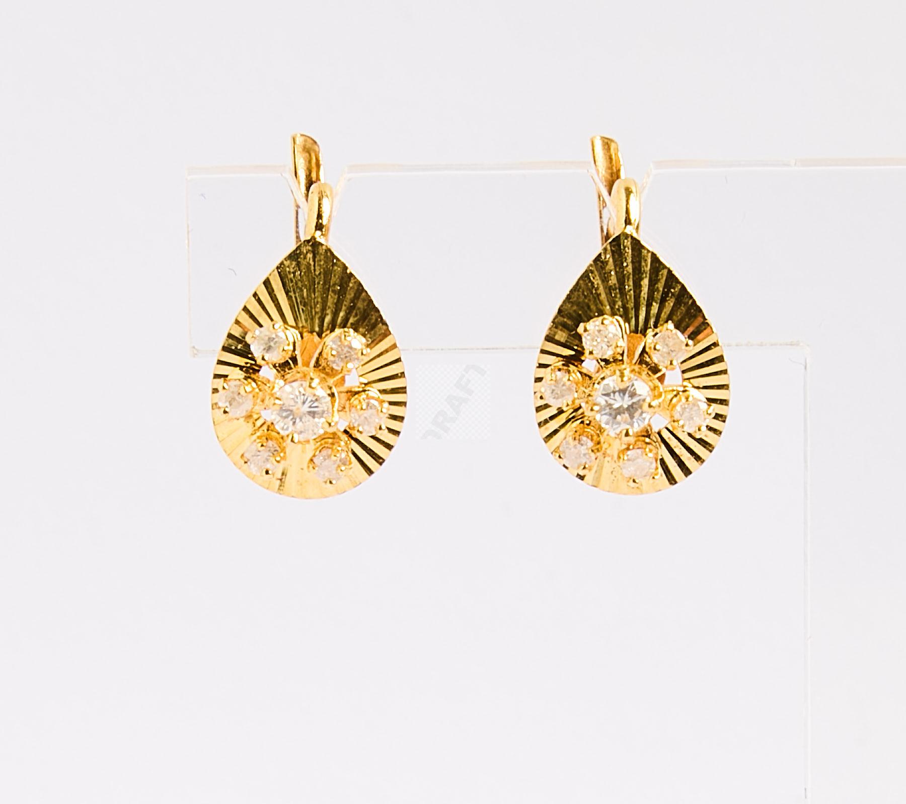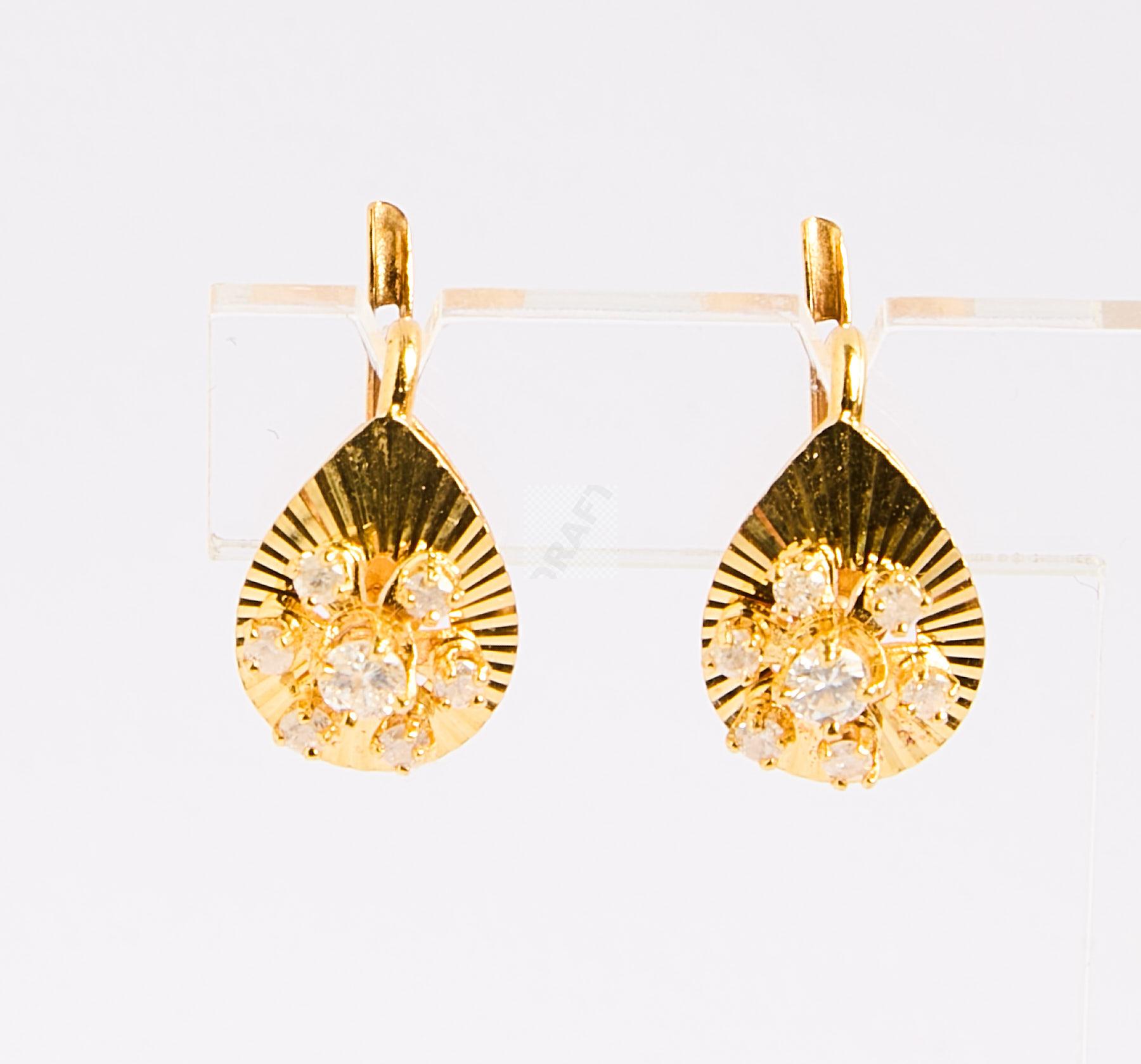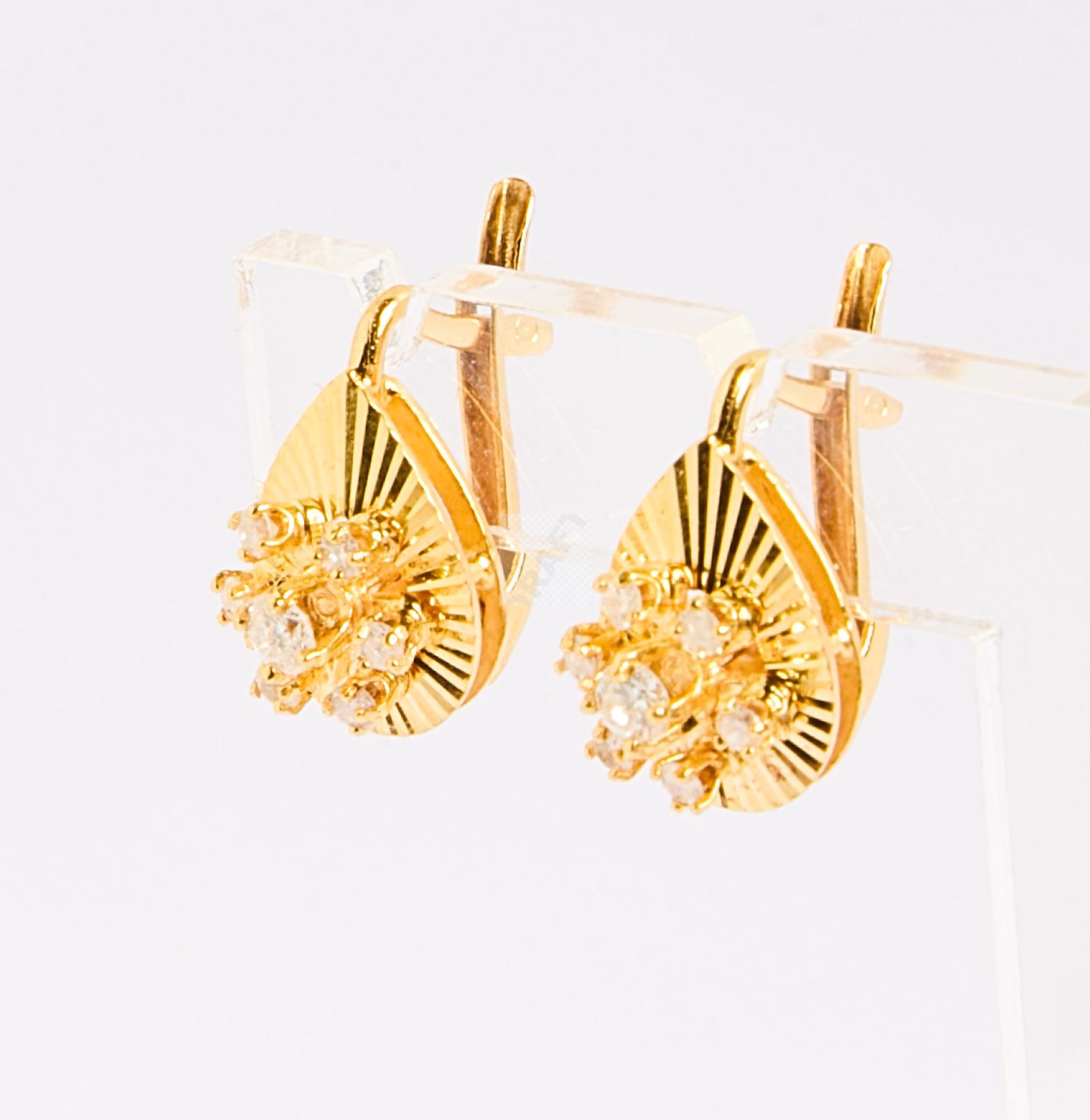 42 Paire de boucles d’oreilles dormeuses en or jaune 585 ‰ pour oreilles percées, pavées de petits diamants, poids brut 4,7 g