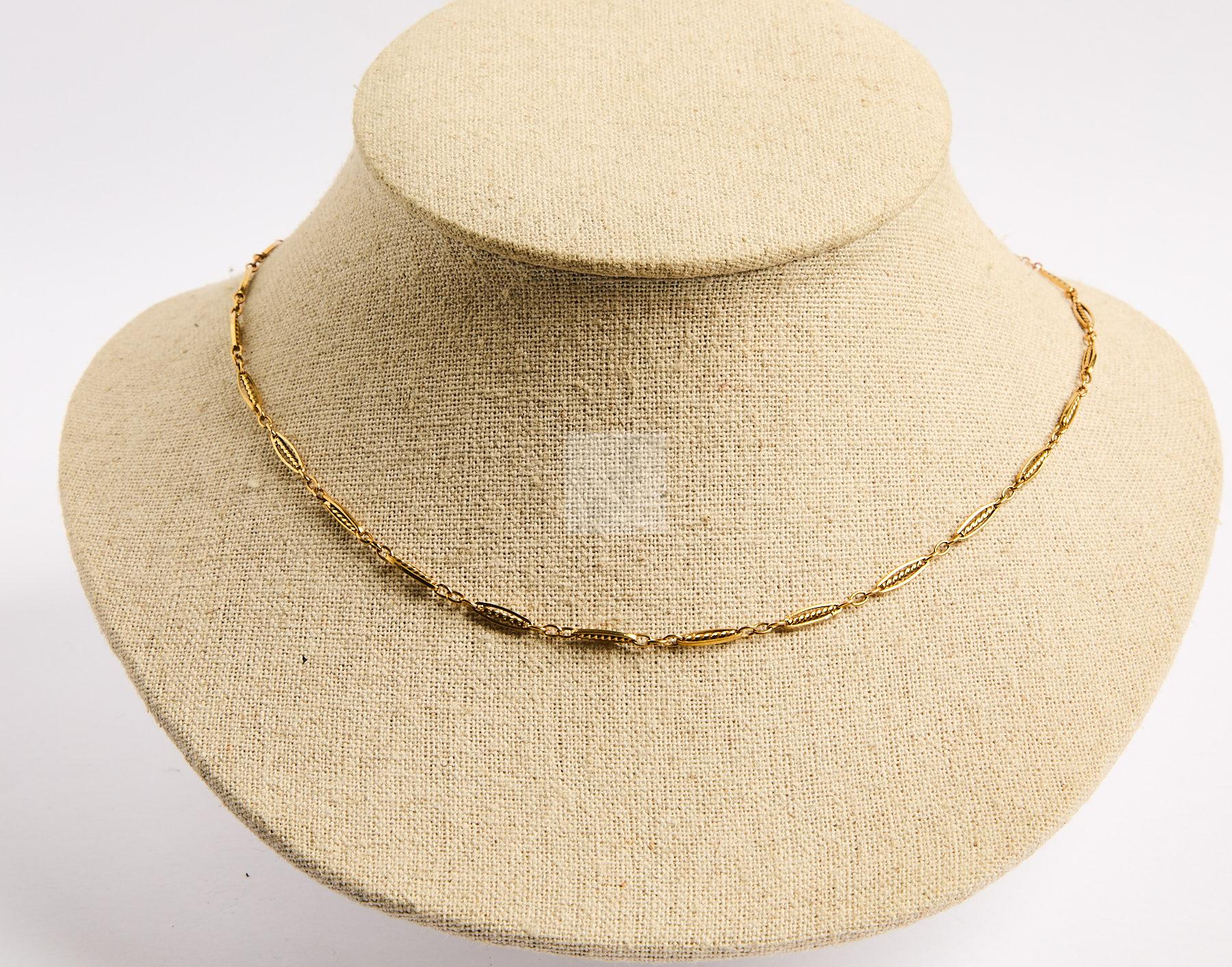Lot n°54 - 54 Chaine de cou en or jaune 750 ‰, 47 cm, mailles filigranées, anneau métal, p