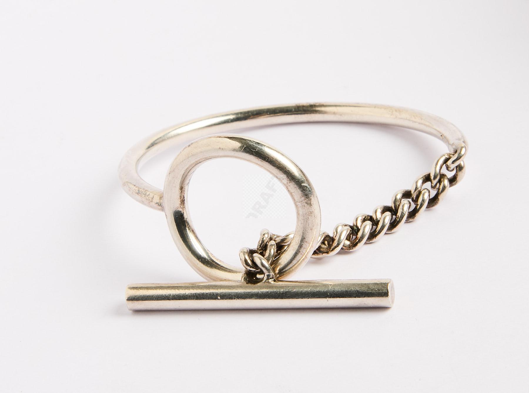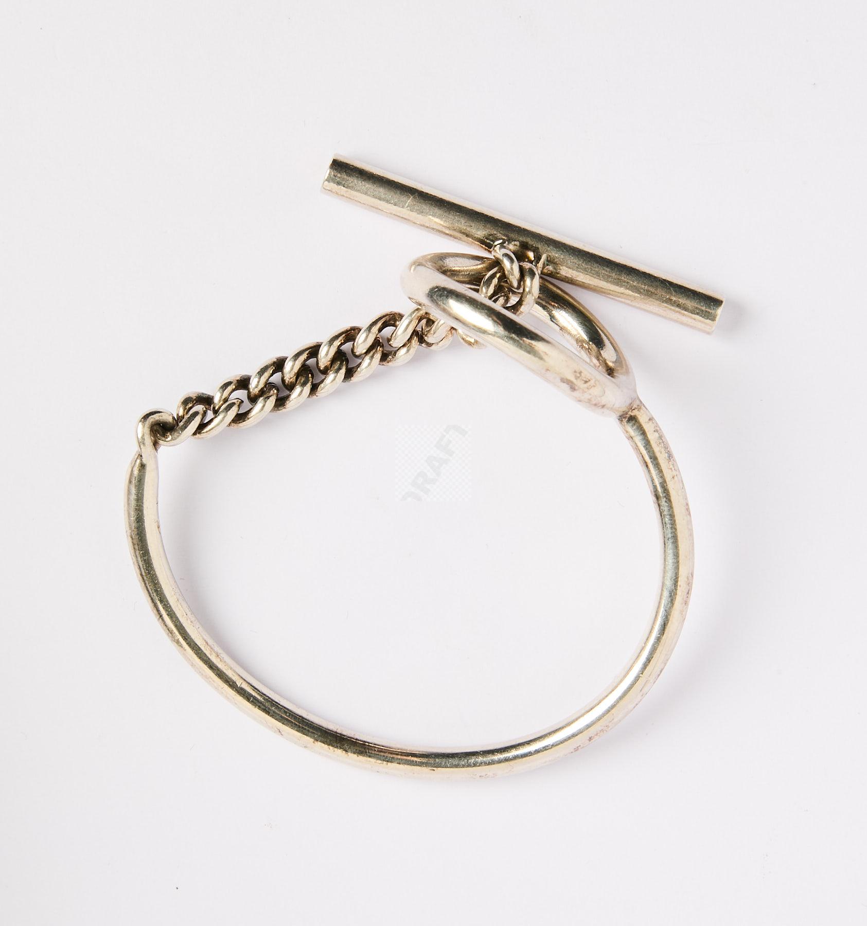 Lot n°65 - 65 HERMES : Bracelet croisette en argent, signé au centre intérieur ,