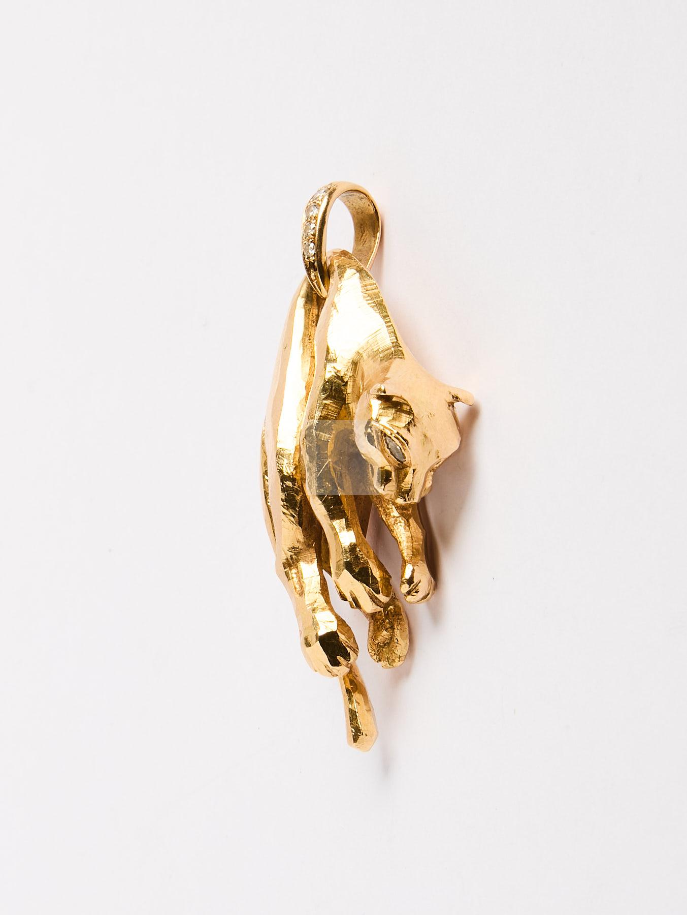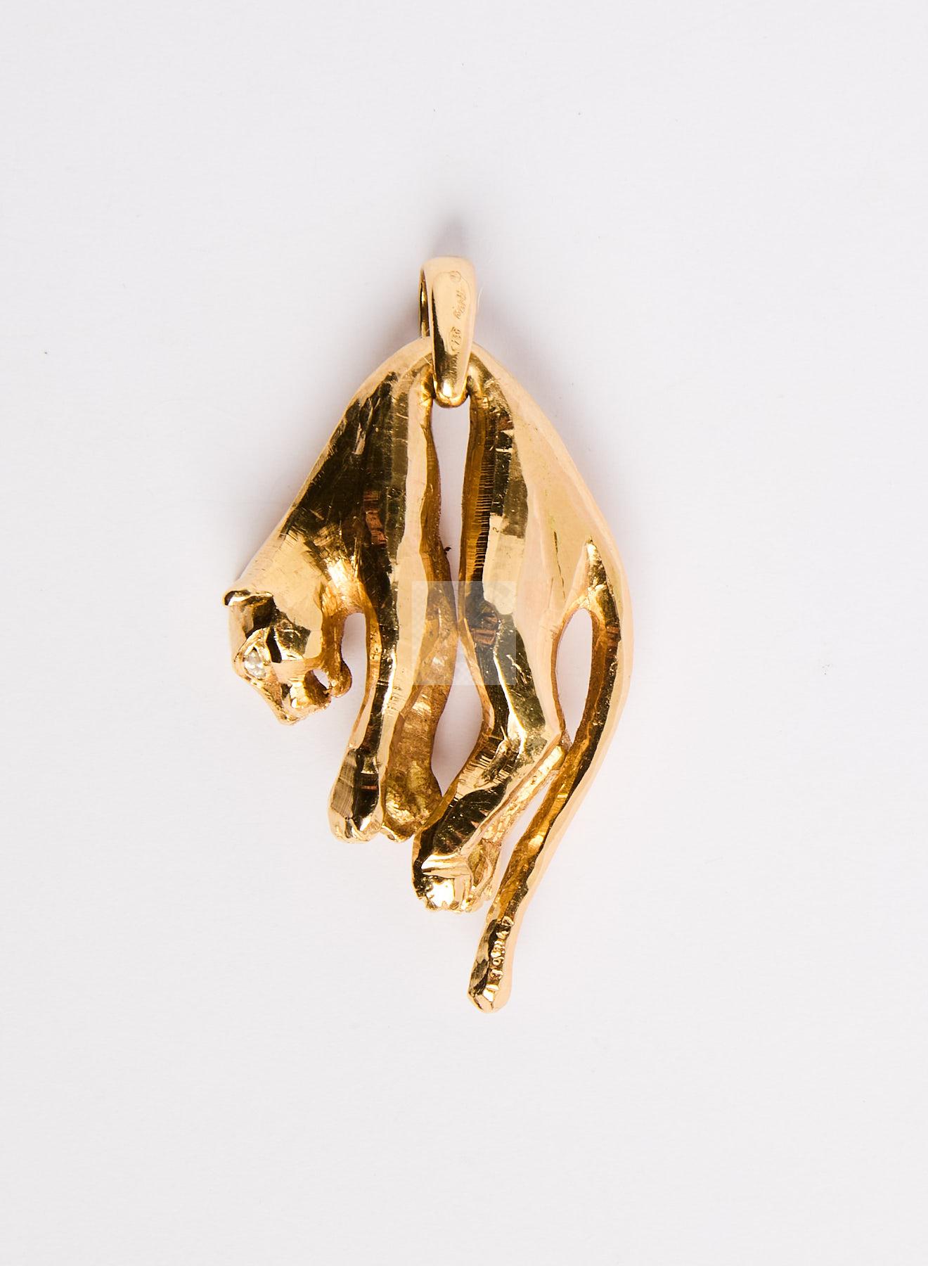 Lot n°66 - 66 CARTIER: Pendentif panthère en or jaune 750/1000 signé (manque un diamant sur