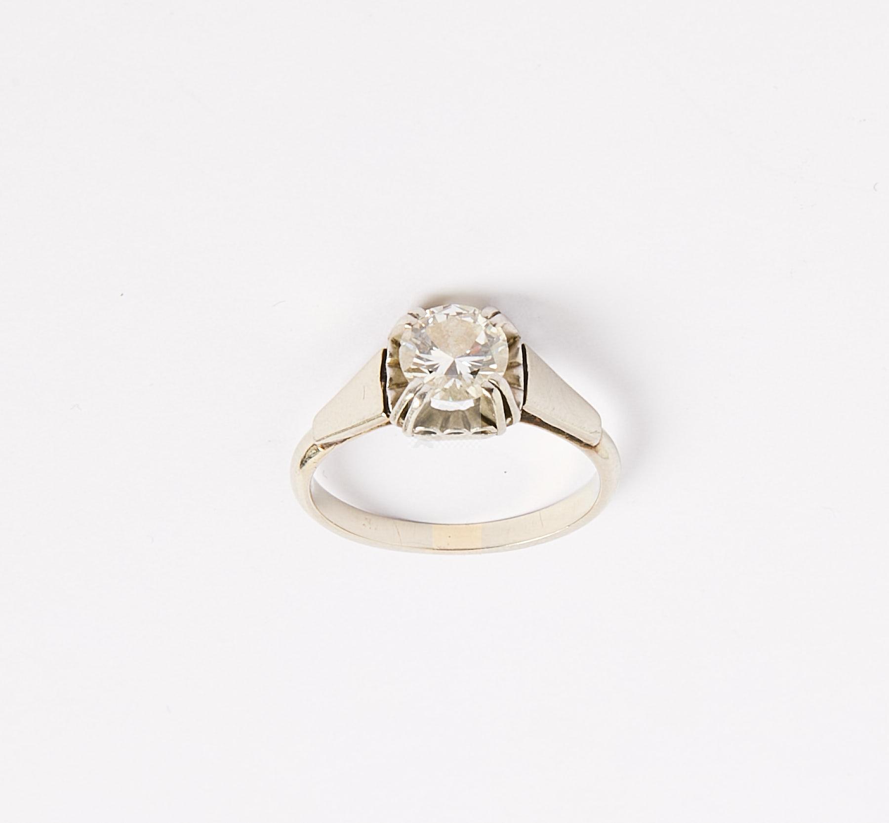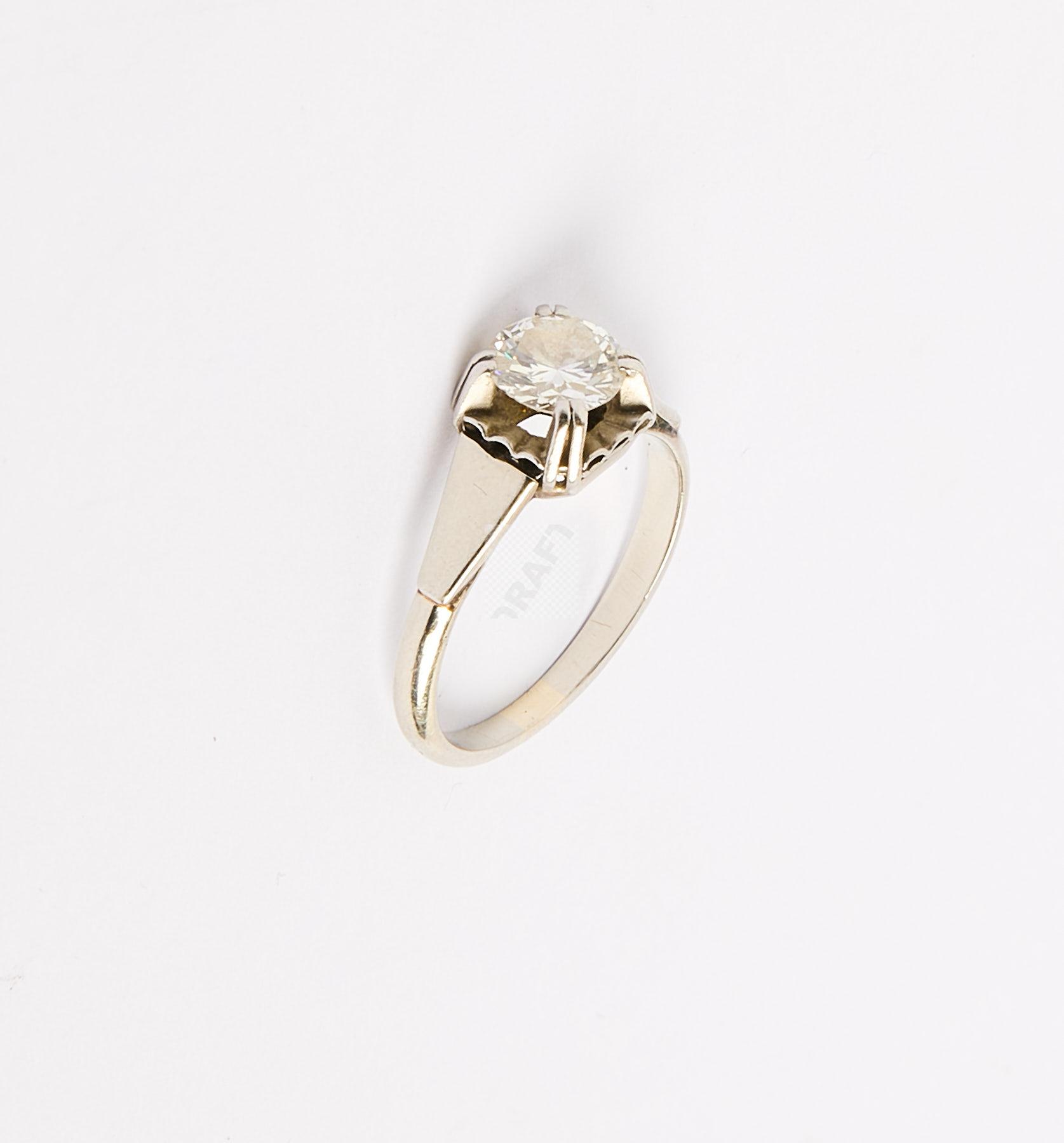 Lot n°118 - 118 Bague en platine sertie d’un diamant brillanté d’un poids estimé à 1,05 ct,