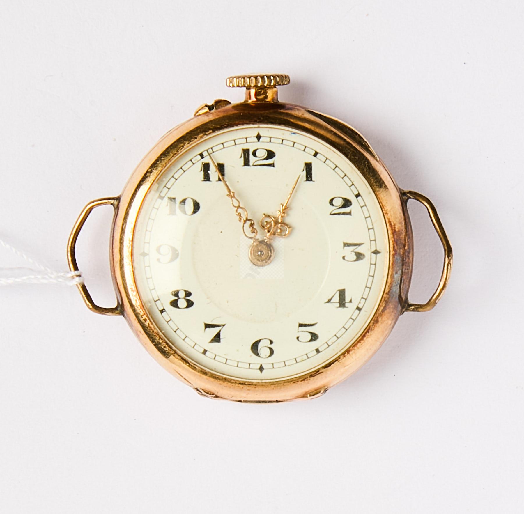 Lot n°123 - 123 Montre de dame en or jaune , double boitier or, le dos gravé d’un trophée d’