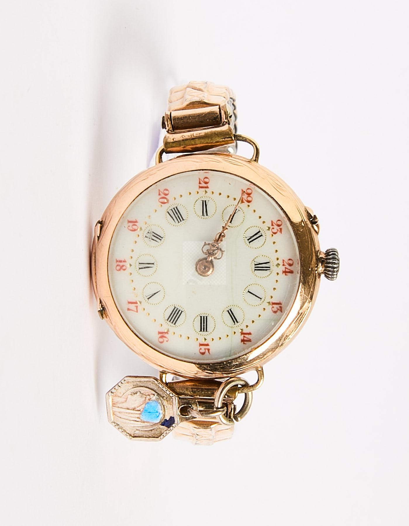 Lot n°128 - 128 Montre de dame en or jaune 750/1000, poinçon tête de cheval, bracelet métal,