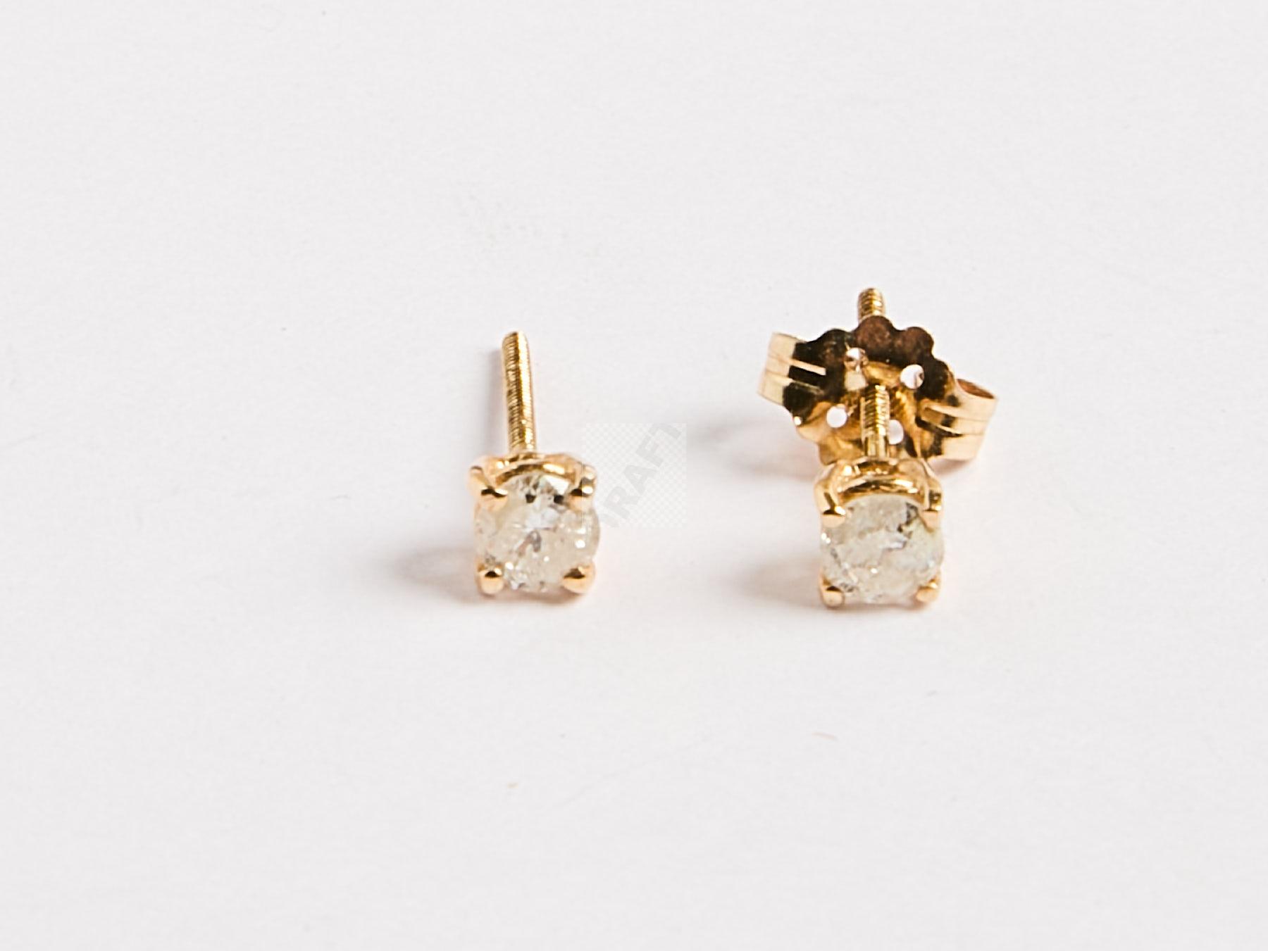 Lot n°162 - 162 Paire de clous d’oreilles en or jaune 750 ‰ sertis de diamants de 0,15 ct en