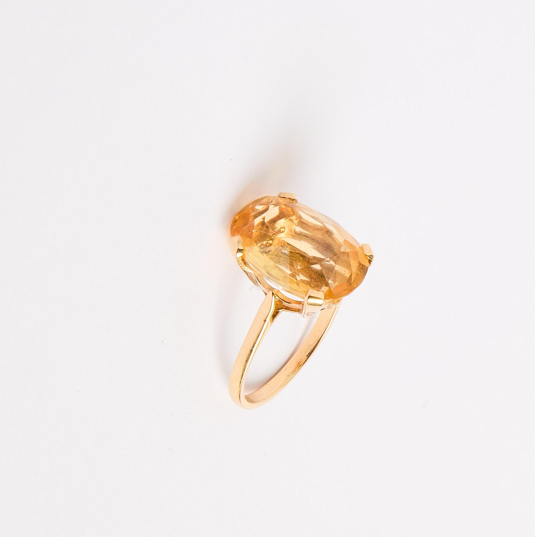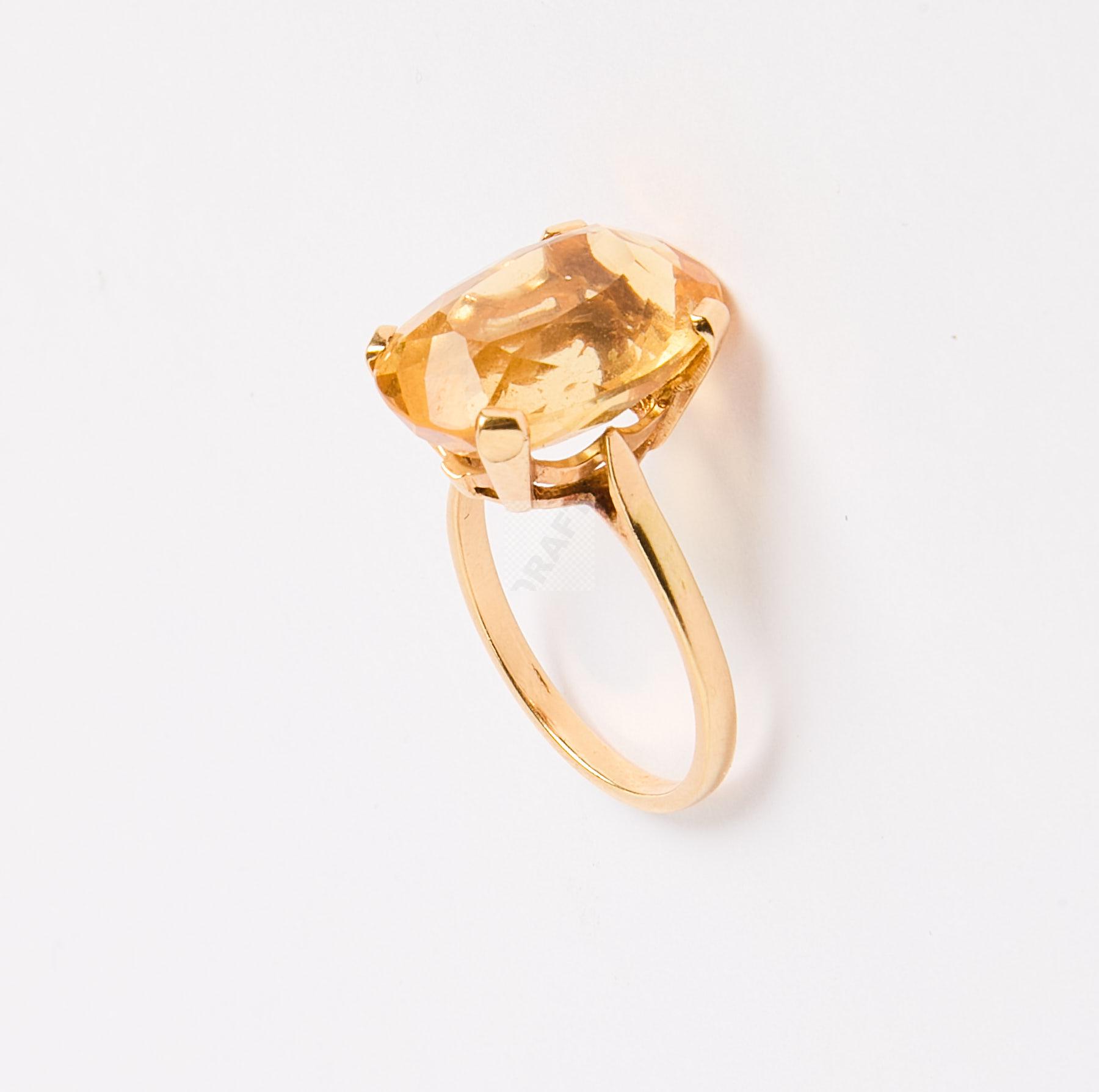 Lot n°171 - 171 Bague en or jaune 750 ‰ sertie d’une citrine ovale d’un poids estimé à 13 ct