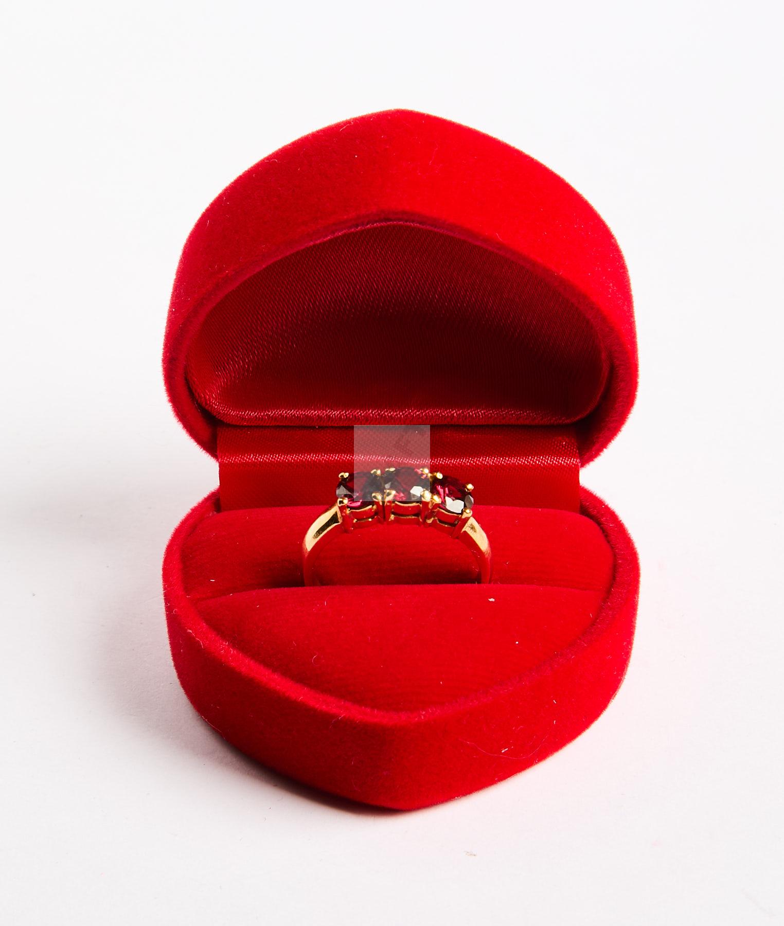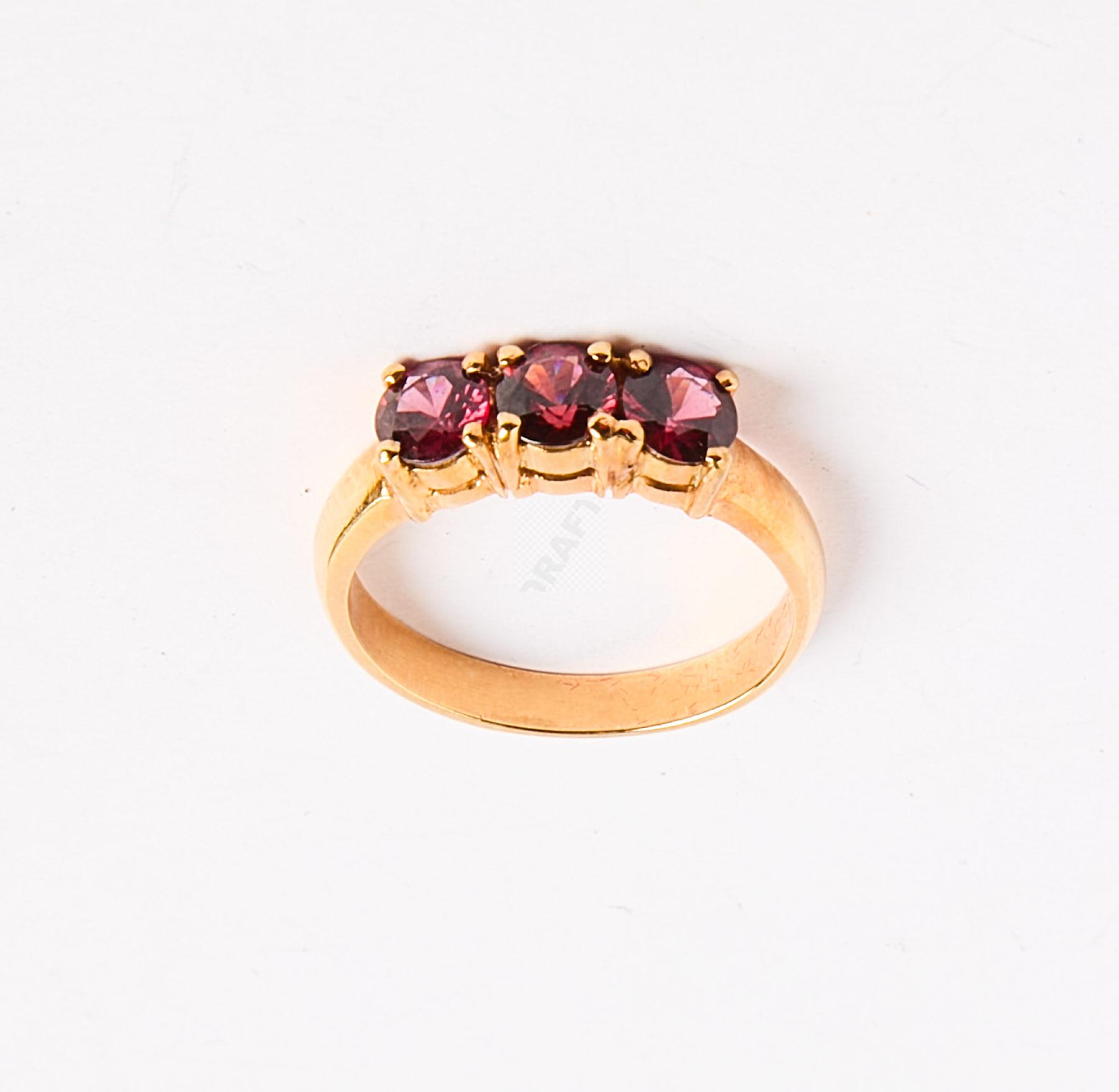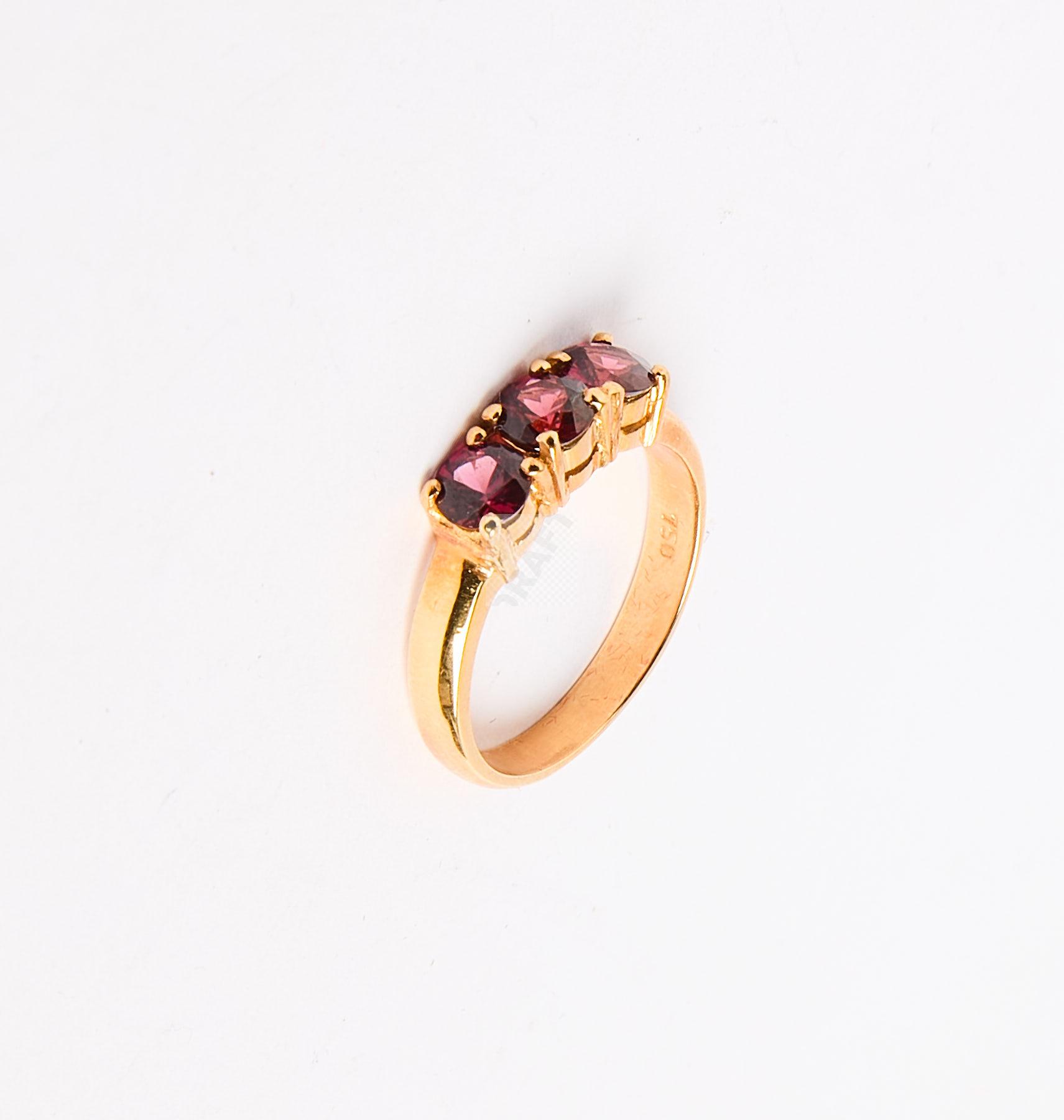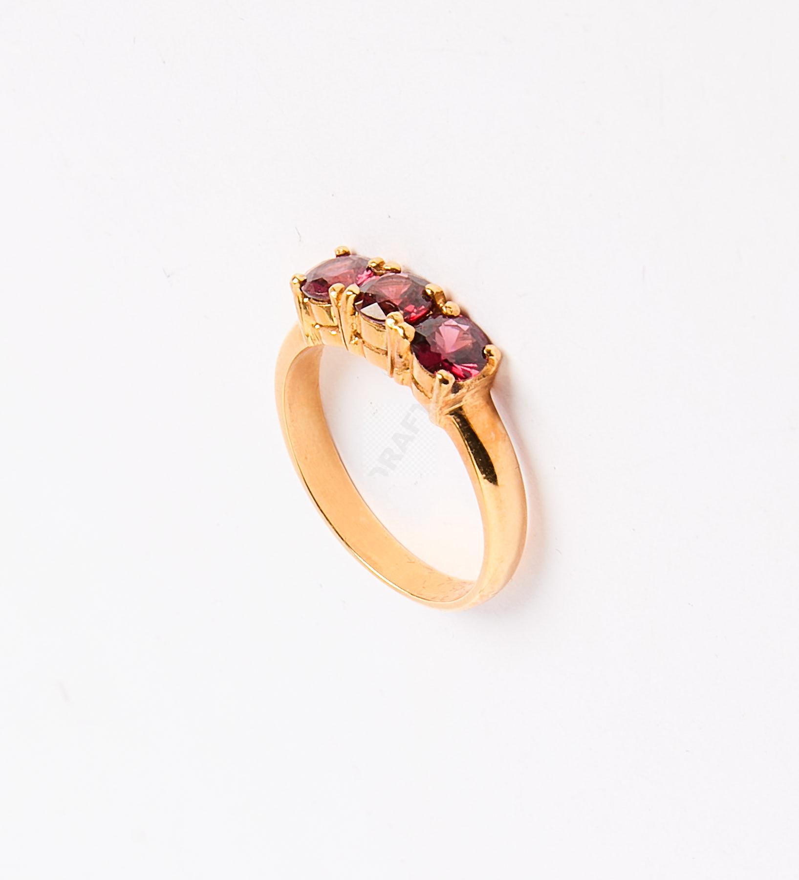 179 Bague en or jaune 750 ‰ sertie de trois pierres rouges, tour de doigt 55, poids 4,5 g,