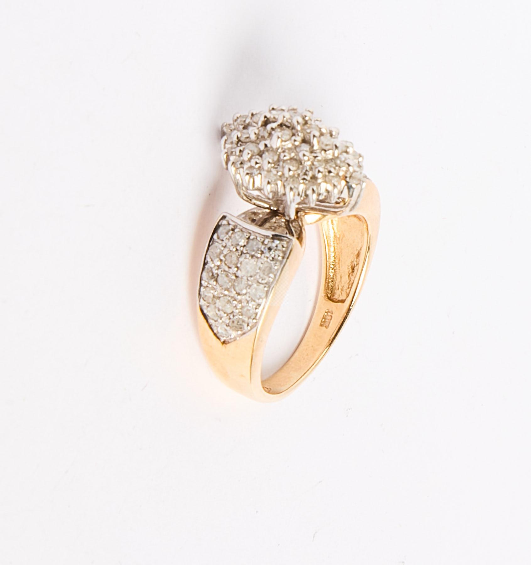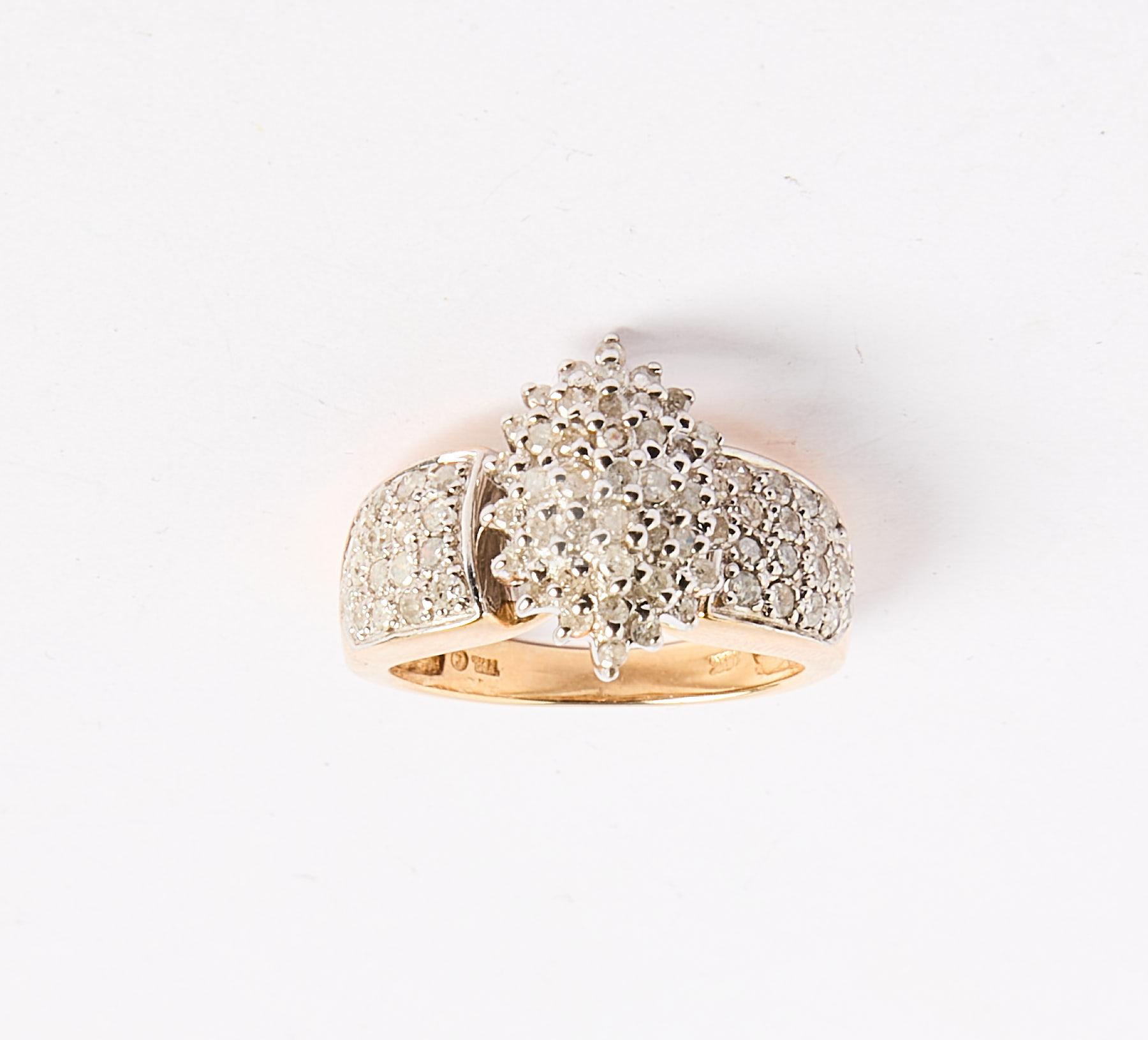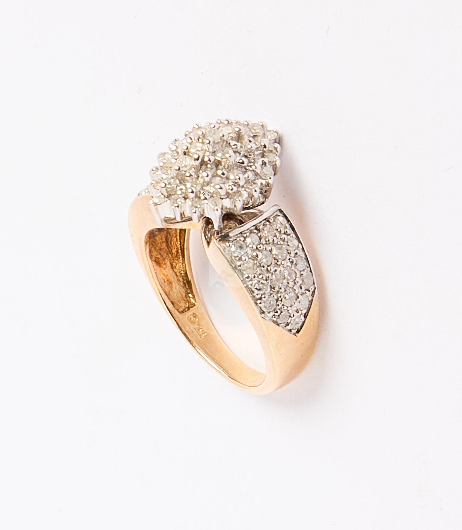 Lot n°195 - 195 Bague en or jaune 585 ‰ pavée en navette et sur épaulement de petits diamant