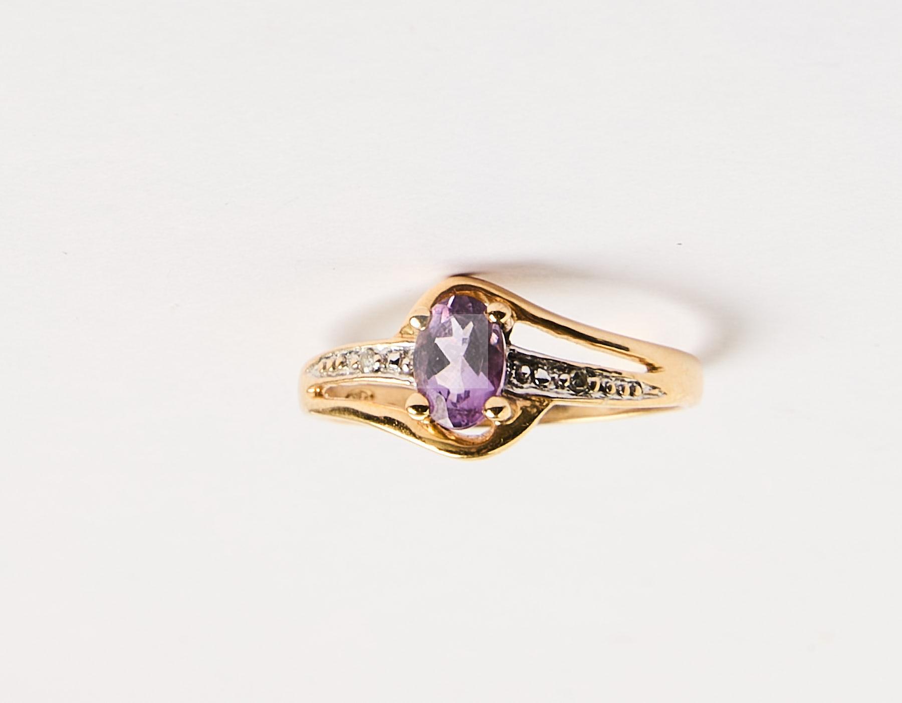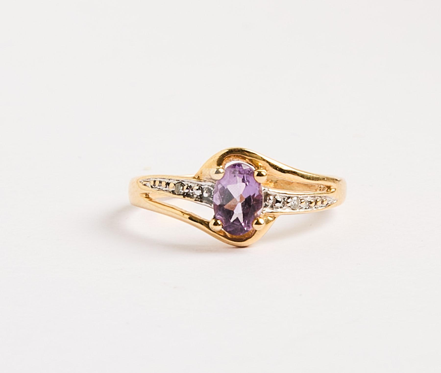 Lot n°207 - 207 Bague en or jaune 750/1000 et pierre violette tour de doigt 51 1/2, on joint