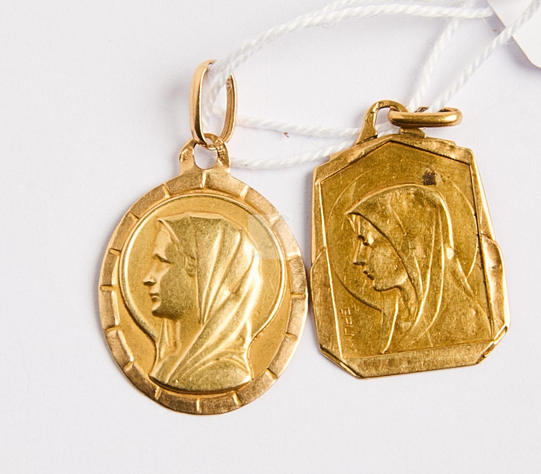 Lot n°225 - 225 Deux médailles religieuses, or jaune 750 ‰ , poids 2,14 g