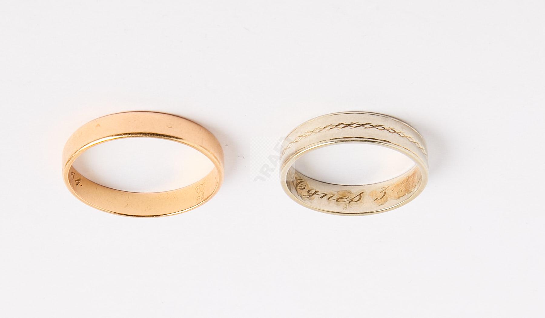 Lot n°268 - 268 Deux alliances en or jaune et or gris 750/1000 gravées.