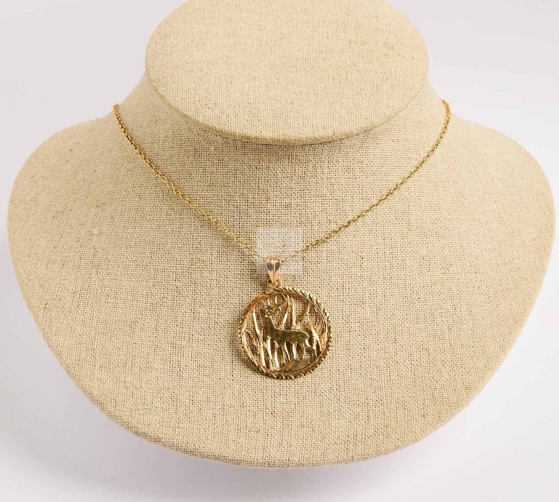 Lot n°277 - 277 Chaine en or jaune 750/1000 avec son pendentif représentant un cerf, 6,1g