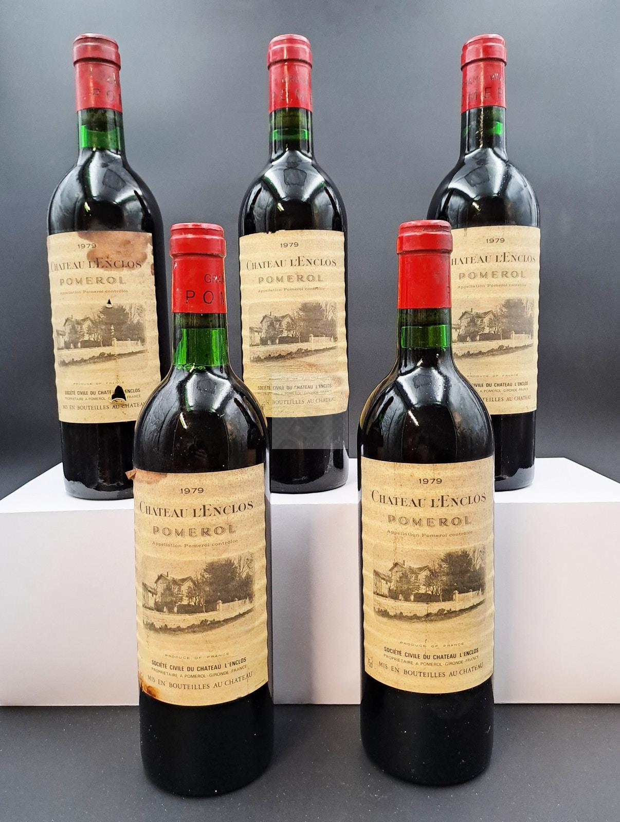 Lot n°269 - 5 Bts CHATEAU L ENCLOS(ME a mieux,ea,efs,et,ca) Pomerol 1979