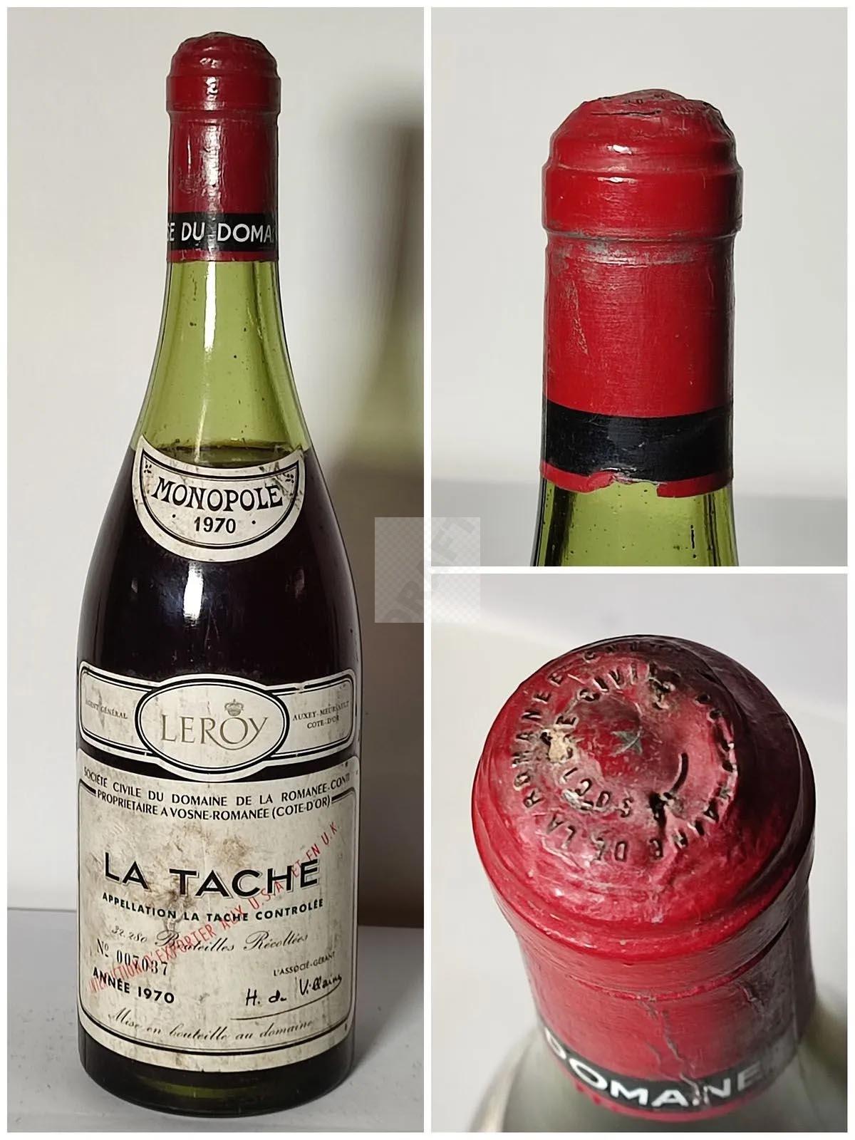 1 B LA TACHE Grand Cru(NIV-5,5cm sous coiffe,efs,ca ,fissure sur le dessus,robe belle) Dom. D.R.C. 1970