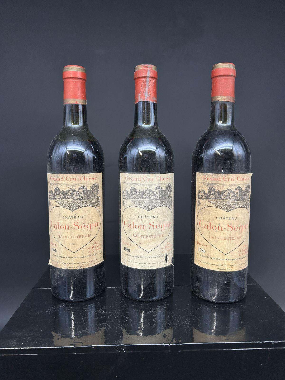 3 B CHÂTEAU CALON SEGUR (N. – 3,4 cm ss liège 55 mm, 1 HE, 1 TLB, ets, 1 ea ; cs, 1 ca) St Estèphe GCC 1980